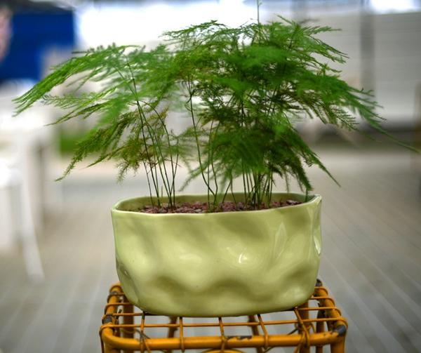 文竹多以紫砂盆种植,透气透水性好,也符合它的古典气质,现代家居摆放文竹,也可以搭配水泥盆,藤编盆器,有返璞归真的自然美